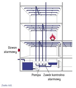Stałe urządzenia gaśnicze – przykłady – schemat instalacji tryskaczowej
