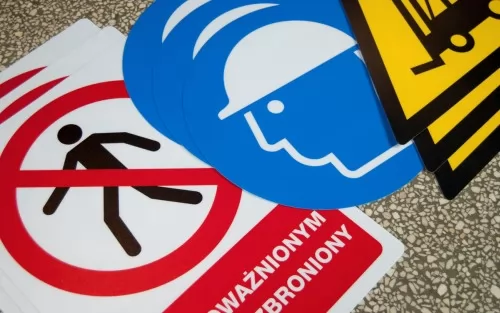 Znaki wykonane na folii samoprzylepnej wykonanej z pcv.
